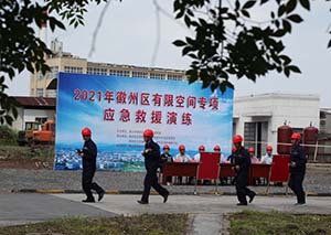 5月14日上午10點,“2021年徽州區(qū)有限空間專項應急救援演練”在我公司進行,市應急管理局副局長吳永杰、副區(qū)長范成林以及區(qū)應急管理局、經(jīng)濟開發(fā)區(qū)、區(qū)衛(wèi)健委、區(qū)消防大隊等部門負責人到場指導,園區(qū)23家化工企業(yè)50余人參加了觀摩。