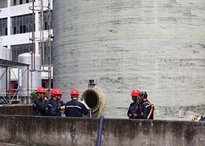 演練分兩個部分進行:第一部分是“有限空間安全作業(yè)的規(guī)范流程”演練。第二部分是“有限空間安全作業(yè)突發(fā)安全事故的應急救援演練”。